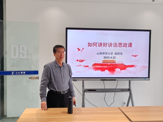 为提升思政课教学质量、助力青年教师成长,2025年4月22日,思政部邀请到山西师范大学英国365集团公司赵跃先教授在图书馆四层研讨室做关于“如何讲好讲活思政课”的专题讲座。本次讲座由思政部负责人赵丽华老师主持,全体思政课教师参加。