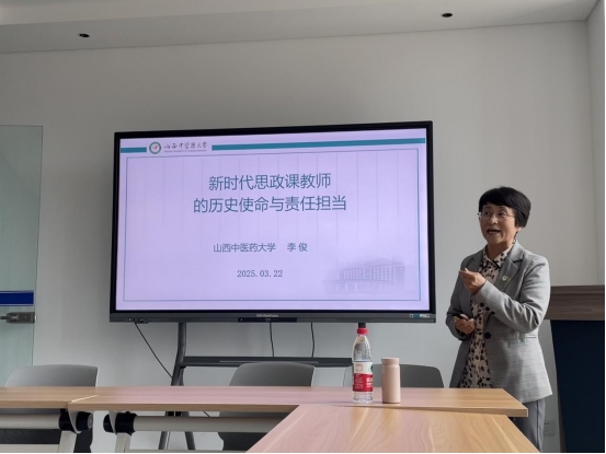 为进一步强化高校思政课教师队伍建设,明确新时代思政教育工作者的使命职责,提升思政课教学质量与育人实效,2025年9月23日下午,山西中医药大学李俊教授在学校图书馆四层研讨室开展了题为《新时代思政课教师的历史使命与责任担当》的专题讲座。本次讲座由思政部负责人赵丽华老师主持,全体思政部教师参加。